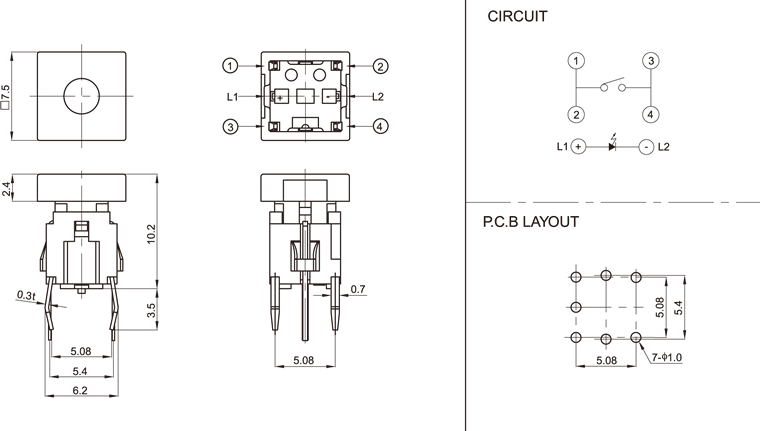 Position: Home >> Products > Illuminated Tact Switch > PB01-102L(With LED) PB01-102